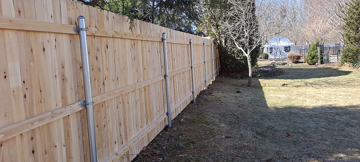 At Fence Solutions, we've been constructing wood-on-steel fences for over two decades. By combining classic wooden fencing with steel posts, you're getting a classic look with a sturdier and more powerful structure to it. Wood-on-steel fencing can also provide you with a more unique look, if desired. These fences are sure to stand up to the elements, including the strongest New England storms, as we use the highest quality materials possible in all that we build.